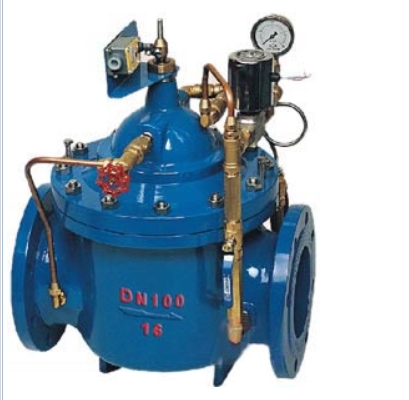 700X多功能水泵控制阀由主阀、电磁导阀、针阀、球阀、单向阀、行程开关、微形过滤器和压力表组成水力控制接管系统。水泵需停止工作时,先由进口压使主阀关闭90%后,水泵停止运转。剩余10%由回水关闭。可防止水锤现象发生。利用电磁导阀控制,不需要其它装置和能源。节约能源,保养简便,停泵平稳。电磁阀可采用交流电220V或直流电24V。广泛用于高层建筑、生活区等供水管网系统及城市供水工程。